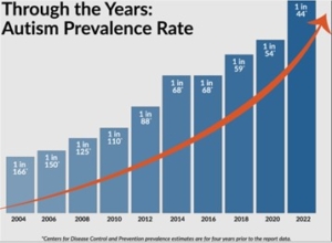 Une étude publiée le 15 avril 2025 par la CDC indique le risque d’autisme est passé de 1 sur 150 pour les enfants nés en 1992 à 1 sur 36 pour ceux nés en 2012 et atteint près d’un enfant sur 31 en 2025.