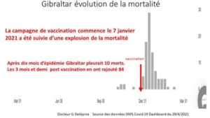Même explosion de mortalité à Gibraltar après la vaccination de la totalité de la population : en 4 mois le nombre de morts  a été multiplié par 8 :