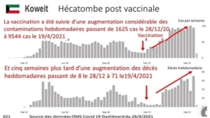 Au Koweït dans les 4 mois qui ont suivi la campagne de vaccination le nombre de contaminations hebdomadaires a été multiplié par 6 et la mortalité par 8 :