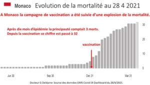 Avant la vaccination, Monaco avait été presque épargné par le covid et ne comptait que 3 morts. Durant les 4 mois qui ont suivi les injections la mortalité a été multipliée par 10 :
